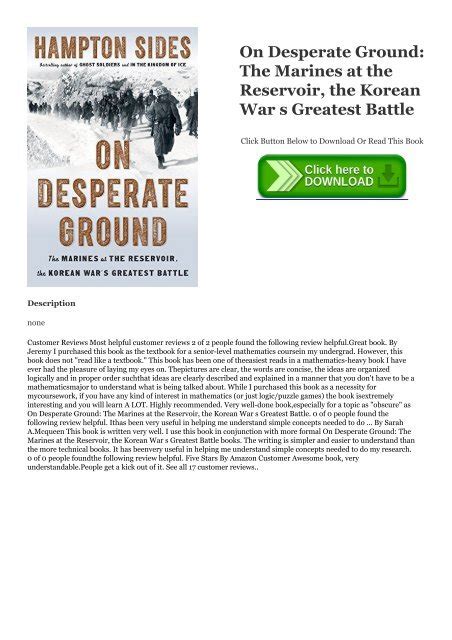 Read pdf free on desperate ground marines at Epub By Click Button. pdf free on desperate ground marines at it’s easy to recommend a new book category such as Novel, journal, comic, magazin, ect. You see it and you just know that the designer is also an author and understands the challenges involved with having a good book. You can easy klick for detailing book and you can read it online, even you can download it
